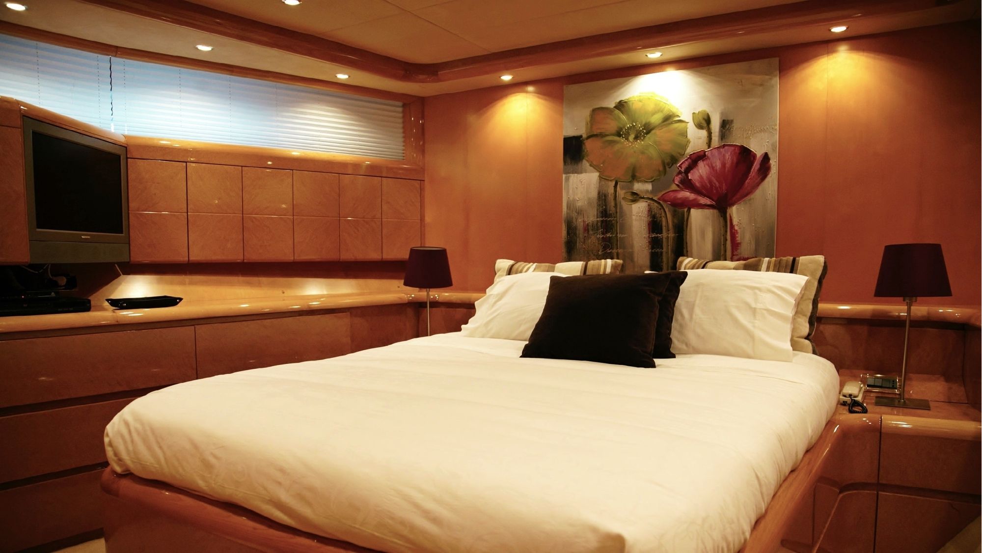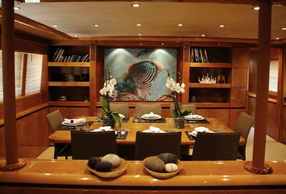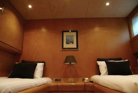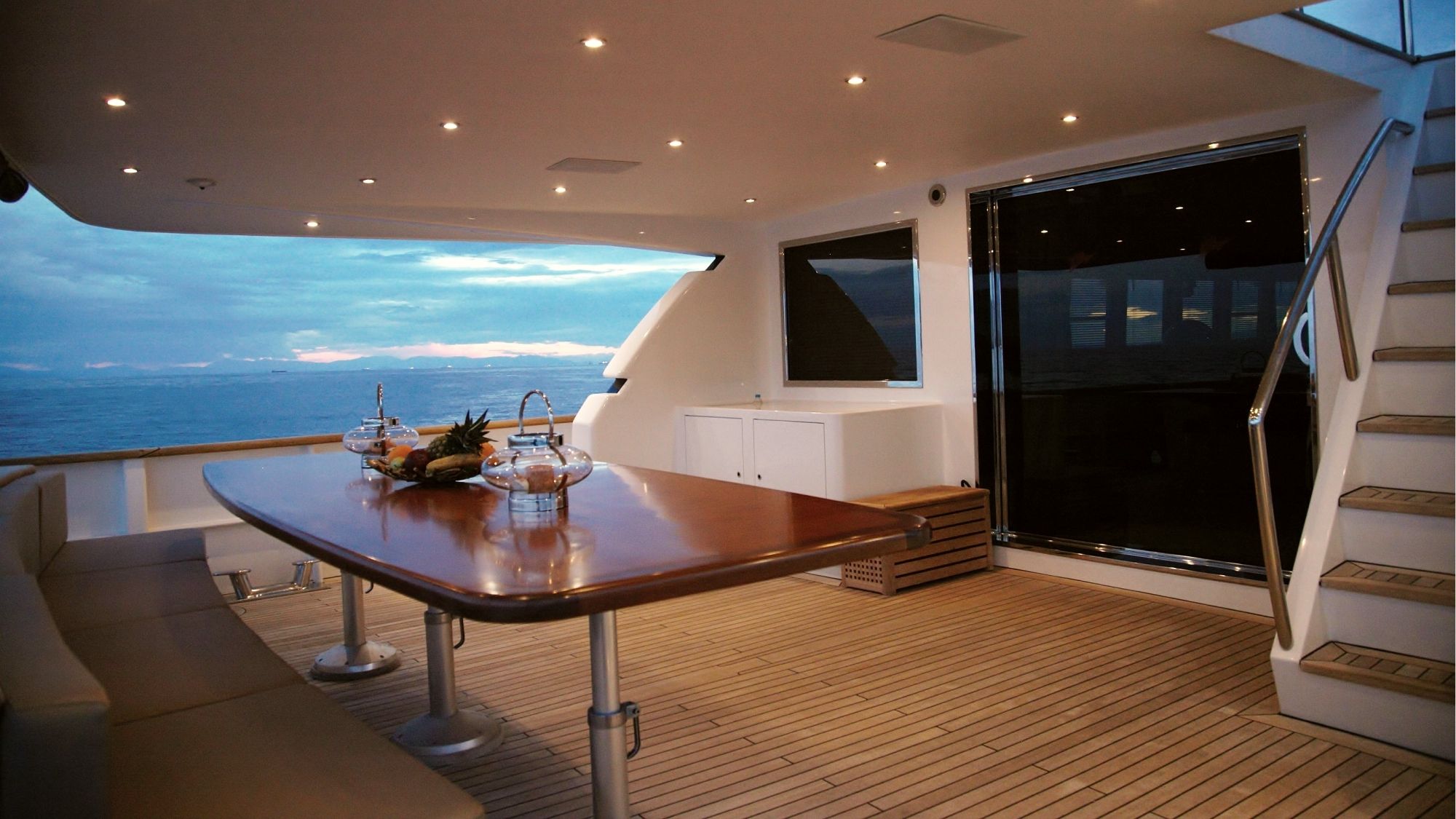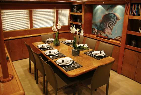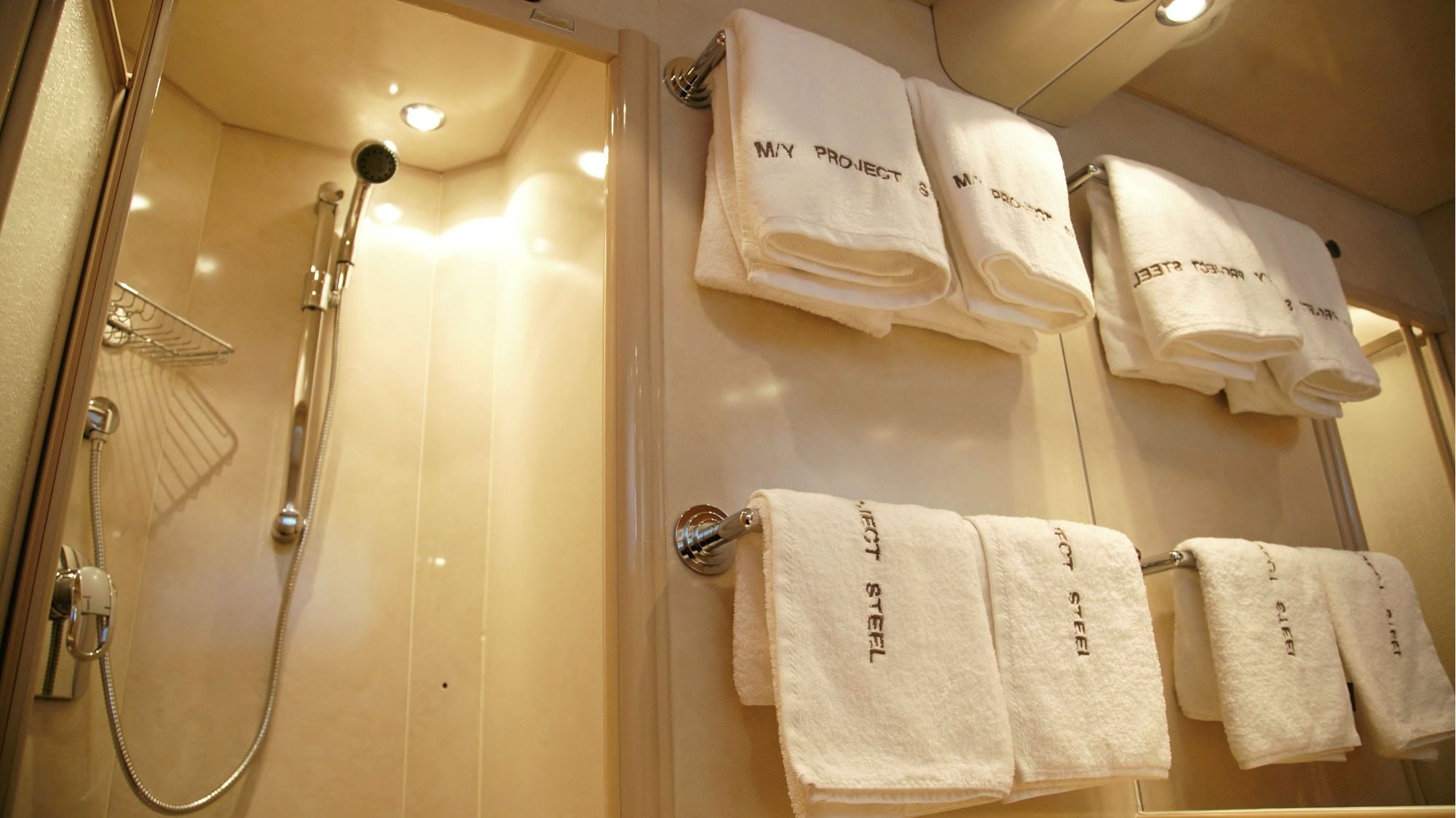 Her interior design and decor is by Roberto Del Re and her exterior styling is by Vincenzo Ruggiero. In 2007 & 2014 further refit work and modernization was additionally performed and now she looks better than new! Everlasting styling, beautiful furnishings create an elegant and comfortable atmosphere. Her stabilizers will ensure the ultimate comfort throughout your charter holidays. With a cruising speed of 11 knots, a maximum speed of 14 knots she is the perfect combination of luxury and economy in fuel as her consumption is only 130 ltrs/hr. Project Steel has a big variety of water toys as well as other entertainment facilities so that makes her the ideal charter yacht for socializing and entertaining with family and friends.