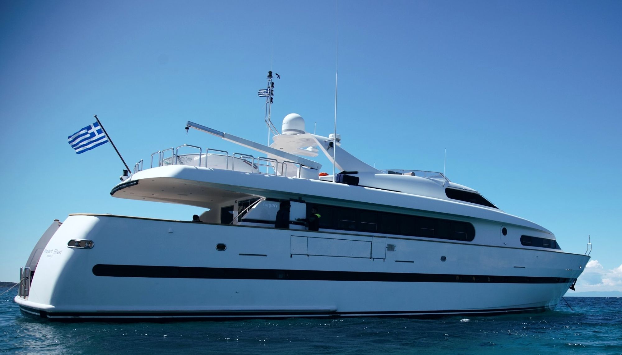 The Superyacht Project Steel is a 30m majestic displacement yacht that sleeps up to 12 guests in 5 staterooms, including a Master cabin, VIP cabin, 2 twins with one pullman each, plus a playroom on main deck convertible to double bed cabin and has 5 qualified crew. This 30m (98 foot) luxury yacht was built by Cantiere Navale A Bugari in 1993. Project Steel was formerly called MISS DANA.