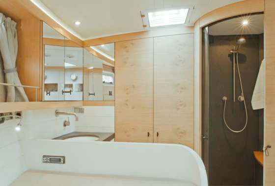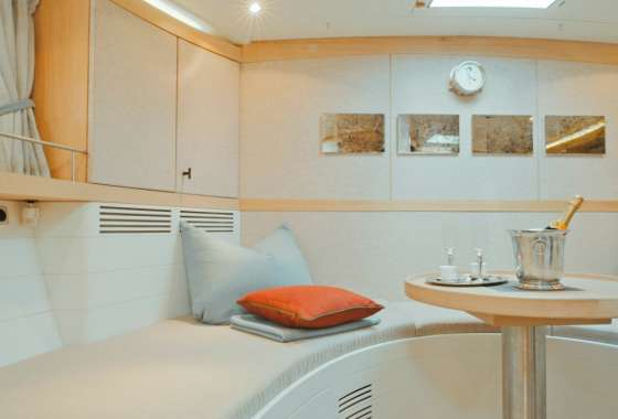 Helene, is a beautiful boat offering luxurious accommodation for groups of 7, in 1 master cabin with one double & one single bed and 2 double guest cabins. All air-conditioned with en suite facilities. Spacious outdoor lounging is offered in her two cockpit areas aft and midship while after dark entertainment is complimented by her inner saloon area with TV and DVD system, laptop and internet connection. Helene, is a maxi cruiser in every sense of the word offering supreme luxury, privacy and the chance to visit the Greek islands in ultimate style.